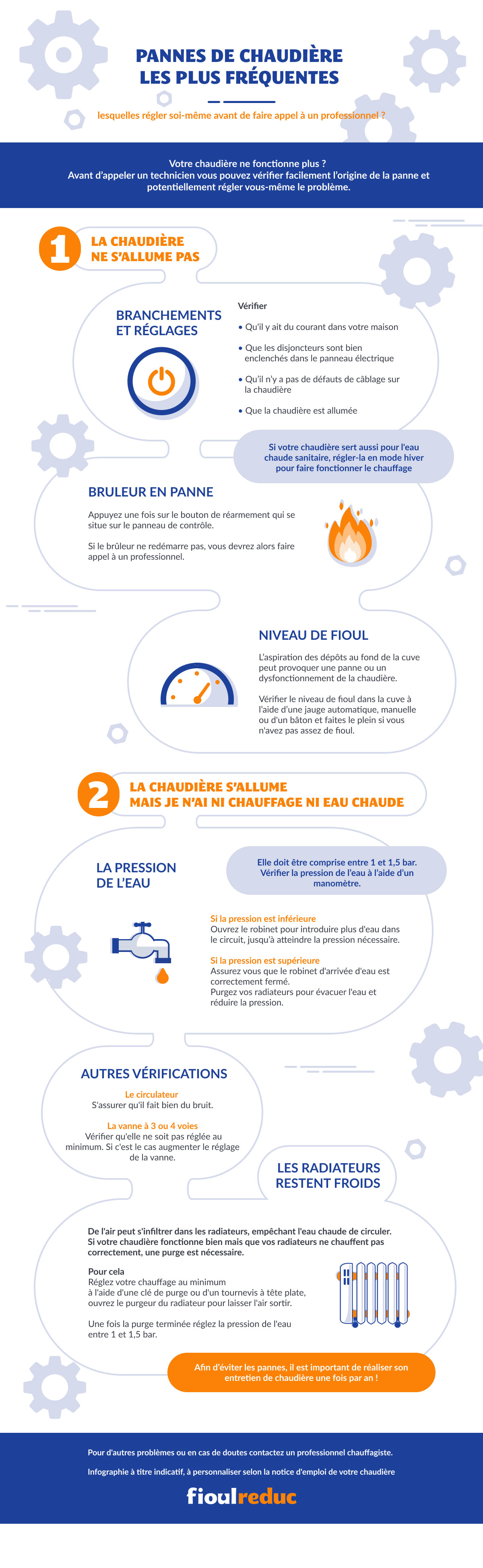 <div style="max-width: 550px;"> <a href="https://www.fioulreduc.com/blog/infographie-panne-chaudiere-guide-depannage" title="Lisez l'article détaillé sur FioulReduc.com" style="display: block;"> <img src="https://cdn.fioulreduc.com/blog/wp-content/uploads/2019/10/infographie-depannages-chaudiere-fioulreduc-full.jpg" alt="INFOGRAPHIE - Guide du dépannage de chaudière avant d'appeler un professionnel" width="550px" border="0"> </a> <p style="text-align: right; color: #666; font-size: 0.9em; font-family: 'Helvetica',sans-serif;"> Une infographie proposée par <a href="http://www.fioulreduc.com" target="_blank">FioulReduc.com</a> </p> </div>